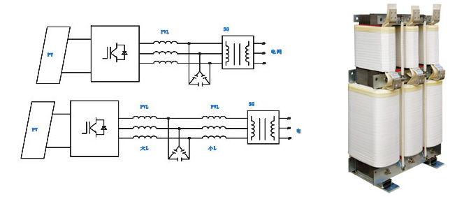 光伏逆变器与电网之间,滤波电抗器主要用于LC及LCL抑制光伏逆变器开关频率纹波电流所衍生的高次谐波电流,?;つ姹淦?,净化电网.
